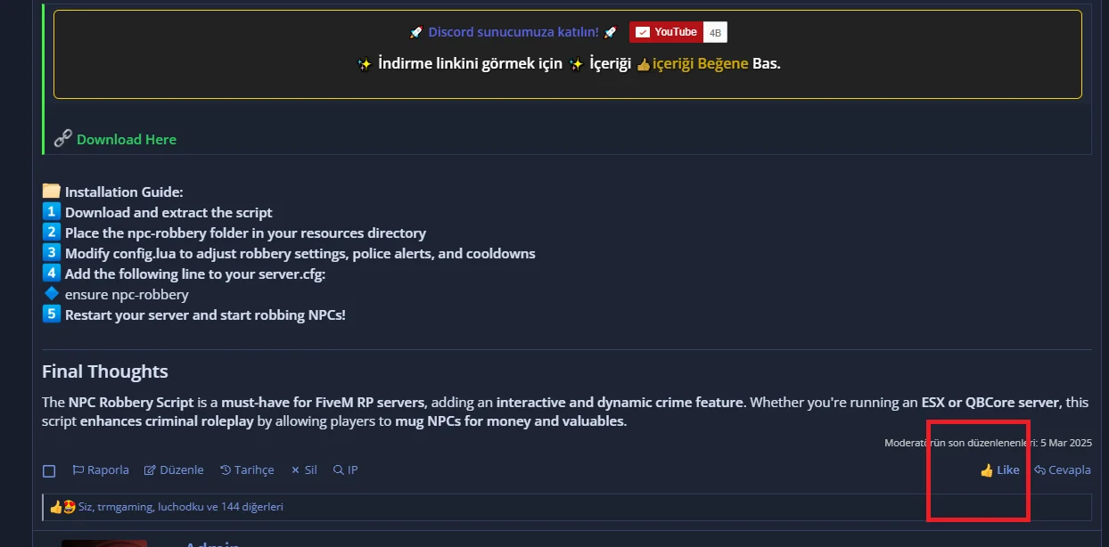 toxicfivemtoxicfivem is verified member. Staff member FounderTop Poster Of Month Joined Oct 13, 2024 Messages 713 Reaction score 48,017 Points 93 Website fivemhouse.com Credits 2,549 Yesterday at 4:07 PM #2 sylan12345 said: este script esta muy bueno asi que deberia tener muchas mas descargas de las que tiene lo malo es que nose como activarlo Click to expand... Necesitas usar este método para poder descargar. Attachments image.webp 42.9 KB · Views: 1